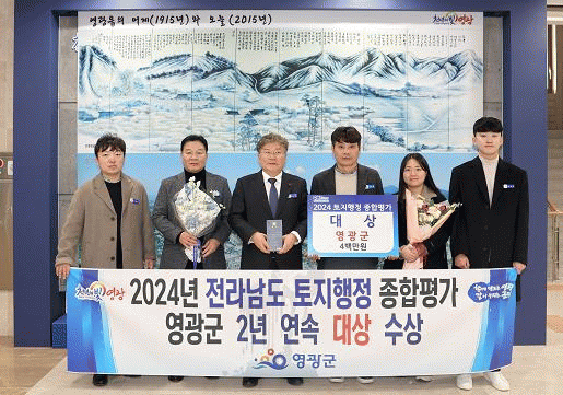 특히 영광군은 지적재조사 분야에서 일필지 조사부터 측량까지 지역적 특성을 고려한 3차원 시뮬레이션 기술적용으로 최적의 측량방법 등 적극적인 사업 추진으로 타 지자체보다 비교적 우위의 실적을 보여 높은 평가를 받았다.