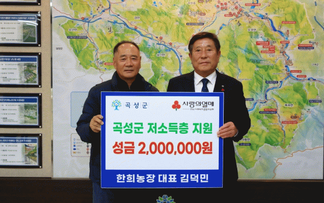 조상래 군수는 “매년 지역 사회에 온정을 나눠주시는 한희농장 김덕민 대표에게 깊은 감사의 뜻을 전하며, 지원이 필요한 저소득 가정에 잘 전달될 수 있도록 최선을 다하겠다”라고 밝혔다.