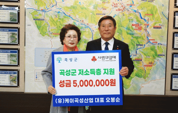 (유)케이곡성산업은 작년 성금 5백만 원을 기부했으며, 오봉순 대표는 석곡면 독거노인을 위해 김장 김치를 지원하는 등 곡성군 저소득층을 위해 꾸준히 지원하고 있다.