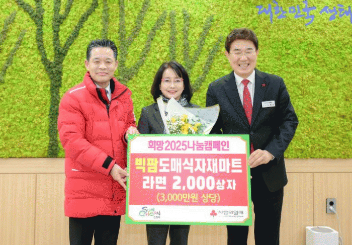 노관규 시장은 “희망2025나눔캠페인에 동참해 주신 빅팜도매식자재마트 대표님께 감사드리며, 순천시도 연말 소외되는 이웃이 없도록 촘촘히 살피겠다”고 말했다.