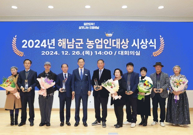 해남군 농업인대상은 읍면 및 유관기관 등 추천한 후보자들 대상으로 현지실사를 거쳐 해남군 농림축산심의회를 통해 지난 2001년부터 지난해까지 99명이 수상했다. 시상식은 26일 해남군청 대회의실에서 개최됐다.