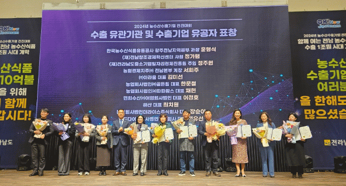 신현곤 전남도 국제협력관은 “전남이 농수산식품 수출 1조 원을 달성한 것은 수출기업과 유관기관의 노력과 헌신 덕분”이라며 “앞으로도 지속 가능한 수출 기반을 마련하고 케이-푸드 수출 강국으로 자리매김토록 적극 지원하겠다”고 말했다.