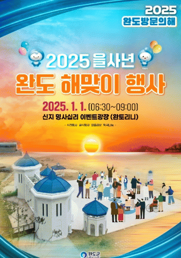 이어 5명의 군민이 대북을 5번씩 치는 ‘희망 신년 타고’와 함께 완도군의 신년 화두를 대형 붓으로 적는 붓글씨 퍼포먼스도 이뤄진다.