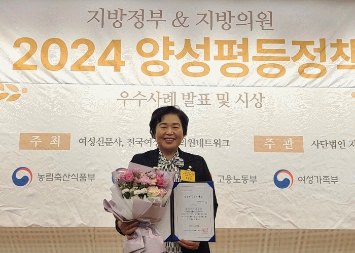 여성신문, 전국여성지방의원네트워크가 주최하고, (사)지방자치발전소가 주관한 ‘2024 양성평등정책대상’은 생활 정치에 기반한 다양하고 혁신적인 양성평등정책의 우수사례를 발굴하고, 양성평등정책에 공로가 있는 의원을 시상하여 널리 알리기 위해 마련됐다.