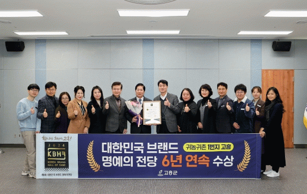 ‘올해로 8회째를 맞이한 대한민국 브랜드 명예의 전당’은 우리나라 각 분야에서 소비자들에게 가장 사랑받는 브랜드를 공모하여 선정하고, 수상자를 발표하는 브랜드 분야 최고 권위의 상이다. 특히, 고흥군 브랜드 ‘귀농귀촌 1번지 고흥’은 6년 연속 수상했다. 이 성과는 전국에서 고흥군이 유일하다.