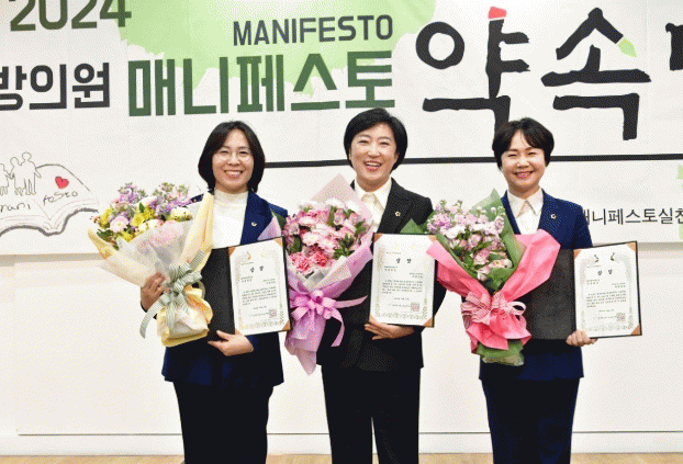 (사)한국매니페스토실천본부는 12월 27일 오후 2시 서울 영등포아트홀에서 ‘좋은조례분야’ 최우수상에 명진 의원을 우수상에 이귀순, 신수정 의원을 시상했다.