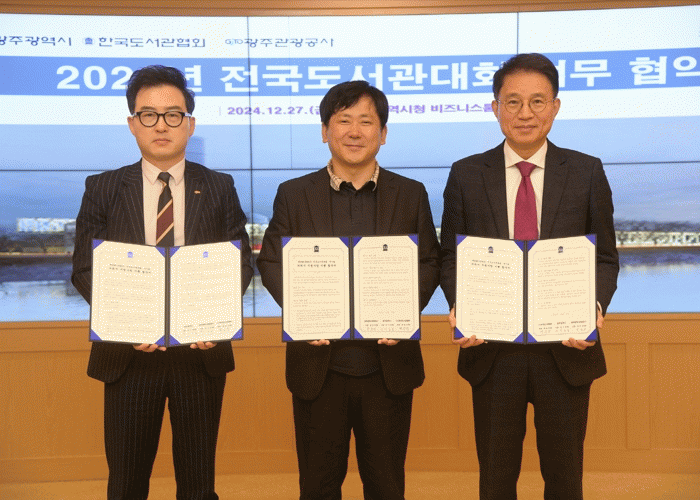 이날 협약식에는 이상갑 문화경제부시장, 곽승진 한국도서관협회장, 박준영 광주관광공사 본부장이 참석했다.