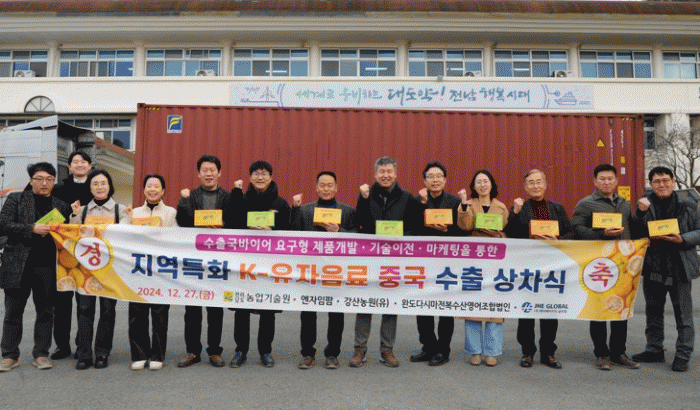 김행란 전남도농업기술원장은 “지역 농식품업체와 협력해 수출국 수요에 맞는 다양한 가공제품을 개발하고, 유통망을 확대해 국내 판매는 물론 수출이 지속해서 이뤄지도록 적극 지원하겠다”고 말했다.