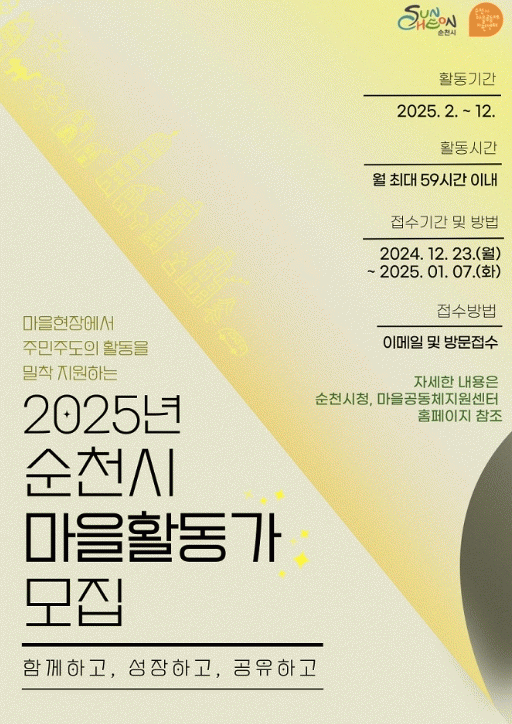 기타 자세한 내용은 순천시마을공동체지원센터(061-749-4480)로 문의하면 된다.