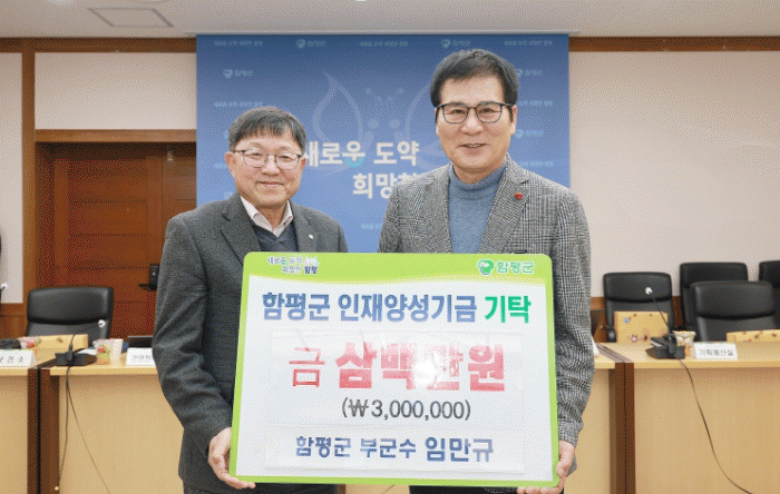 함평군은 “지난 30일 임만규 부군수가 이임식과 더불어 3백만 원을 인재양성기금에 기탁했다”고 밝혔다.
