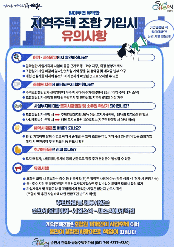 시는 시민들이 지역주택조합에 가입할 때 발생할 수 있는 문제를 예방할 수 있도록, 벽보게시판, 시 누리집 및 SNS 등을 통해 지속적으로 홍보 활동을 강화할 계획이다.