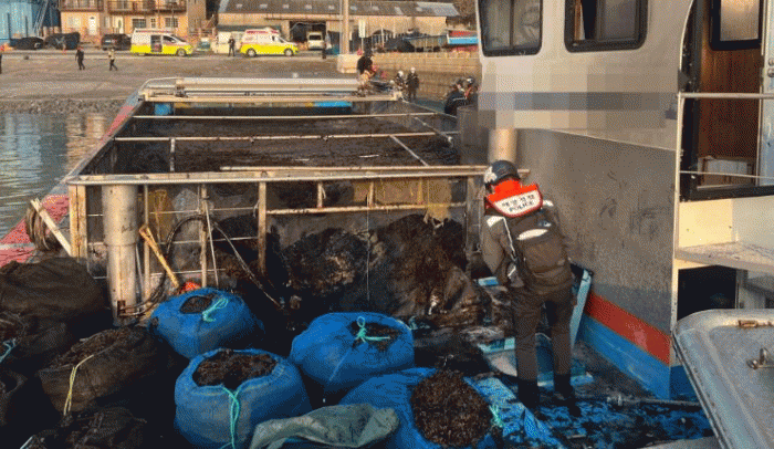 이후 인근 어선들의 협조로 불길을 잡고 연기가 나는 상태로 예인되어 수품항으로 입항 중, 갑판에 적재 해놓은 김이 기관실로 내려앉아 완전 진화 된 것으로 전해졌다.