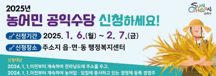 신청대상은 2024년 1월 1일 이전부터 전라남도에 주소를 두고, 2024년 1월 1일 이전에 경영체를 등록한 후 계속해서 농어업·임업에 종사하고 있는 경영주이다.