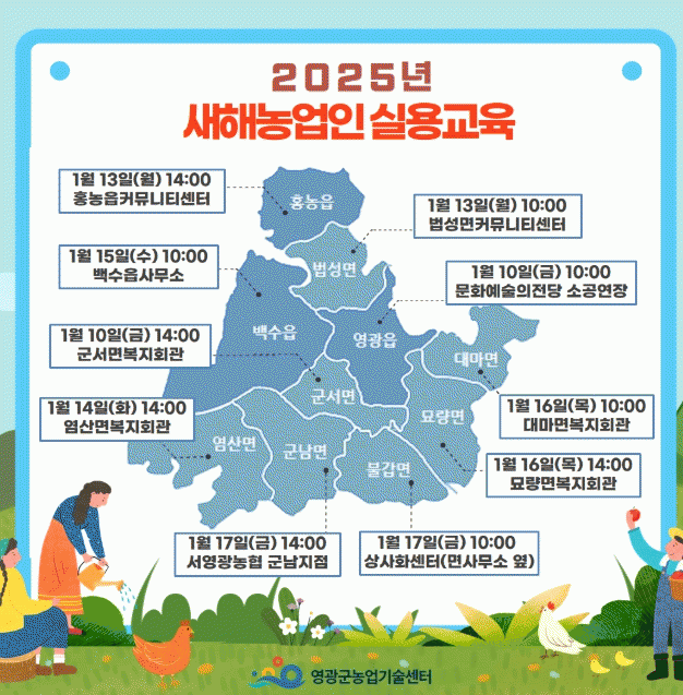 이번 교육은 읍면별로 각 읍면사무소 회의실과 복지회관 등에서 실시하며, 기본직불금 등록 농업인을 대상으로 하는 공익직불제 의무교육도 함께 진행한다.