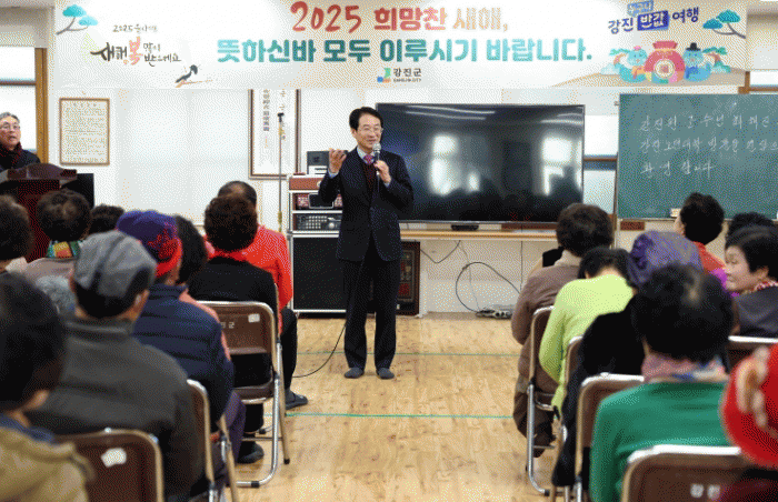 지난 3일 강진원 강진군수는 1981년에 설립된 (사)대한노인회 강진군지회(회장 황호용)를 방문하여 2025년 새해 첫 개강을 맞은 노인대학 수강생들과 만남의 시간을 가졌다.