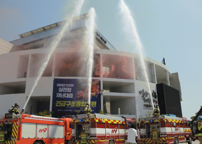 전남소방은 지난해 5월 9일 해남군 명량대첩 해전사 기념전시관에서 지진발생으로 건물 붕괴 및 화재 대응에 대한 실전과 같은 훈련으로 평가위원들의 호평을 받았다.