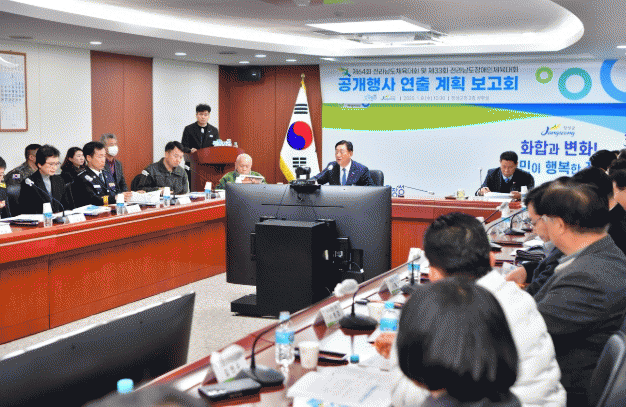 군은 8일 유관기관장, 도?군의원, 체육회 관계자들이 참석한 가운데 군청 상황실에서 제64회 전라남도체육대회, 제33회 전라남도장애인체육대회 공개행사 연출계획 보고회를 가졌다.