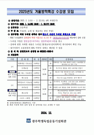 ‘겨울방학특강’은 초등학생들의 건전하고 유익한 방학 생활을 지원하고, 특기적성 계발 지원을 위해 마련됐다.