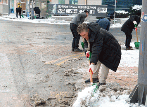 갑작스런 혹한에도 불구하고 영광군 주민과 함께 상가 주변, 인도, 승강장 앞 등 군민들의 출퇴근 및 등ㆍ하굣길 통행 불편 해소와 빙판길로 인한 낙상 사고 예방을 목표로 눈을 치웠다.
