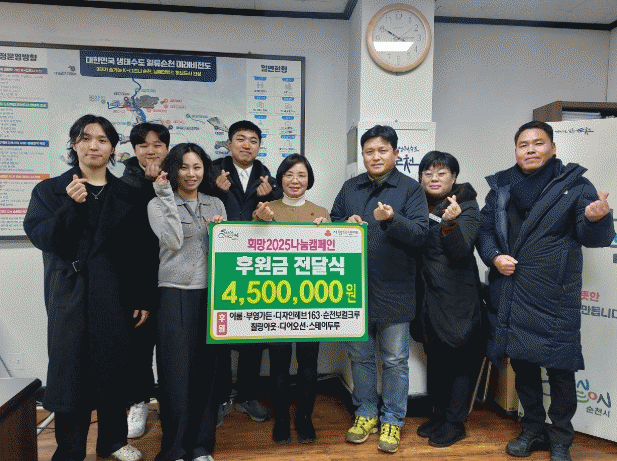시 관계자는 “순천에 이렇게 따뜻하고 속 깊은 청년들이 많이 있어서 순천의 미래가 밝은 것 같다”며 “순천시도 청년이 살고 싶은 도시를 만들어 가는데 최선을 다하겠다”고 말했다.