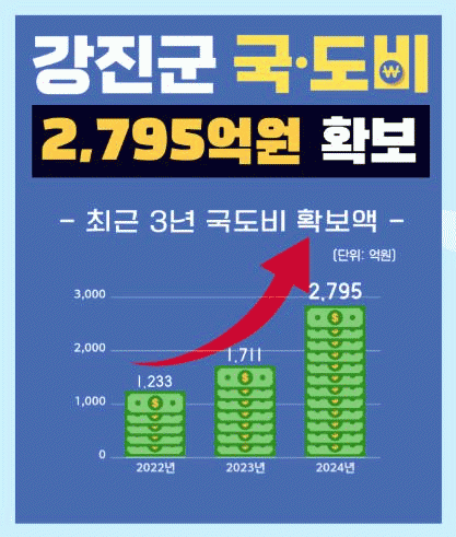 2022년 1,233억 원, 2303년 1,711억 원, 2024년 2,795억 원의 국·도비를 확보하며 3년간 상승곡선을 그리고 있다.