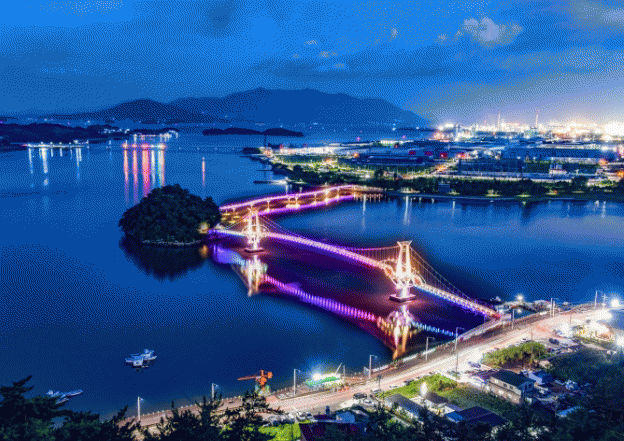 망덕포구에서 시작되는 별헤는다리와 배알도 수변에서 뻗은 해맞이다리는 배알도 섬 정원의 관문이자 곡선의 미를 실현한 낭만해상로드로 은은한 별빛야경을 자랑한다.