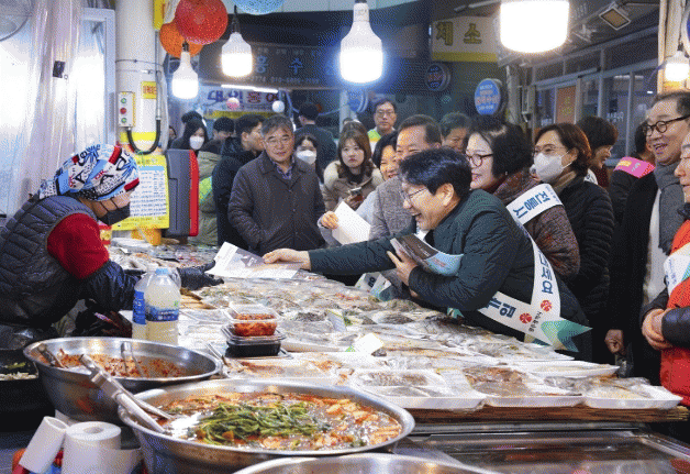 강기정 광주시장을 포함한 공직자들은 지난해 설 연휴를 앞두고 24개 전통시장을 찾아 화재공제 가입 캠페인을 펼쳤다.