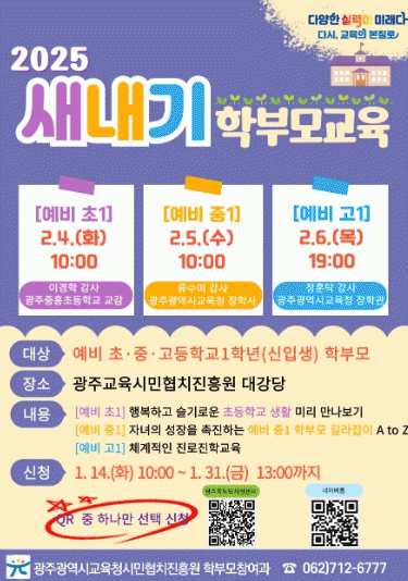 참여를 희망하는 예비 초·중·고등학생 학부모는 14일 오전 10시부터 31일 13시까지 광주학부모지원센터 누리집에서 신청하면 된다.