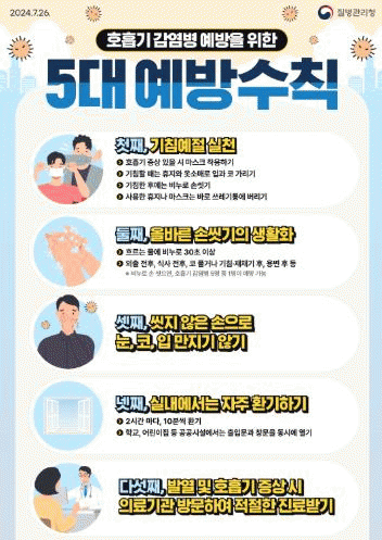 인플루엔자가 비말을 통해 감염되는 만큼, 상대적으로 면역력이 약하고 집단생활을 하는 학교와 감염취약시설에서는 인플루엔자 감염을 막기 위해 취약 호흡기 감염병 5대 예방수칙을 생활화해야 하며 선제적으로 예방접종을 해야 한다.