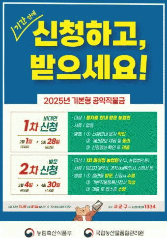 이에 따라 기본형 공익직불금과 기후위기시대 식량안보 강화를 위해 선택형 전략작물 직불금, 저탄소농업 프로그램을 확대 지원할 계획이다.
