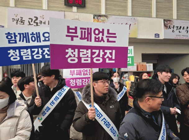 특히, 행사에서는 청렴 문구가 새겨진 손피켓과 어깨띠를 착용한 채 ‘청렴강진’을 세 번 외치는 퍼포먼스가 진행되어, 청렴 실천에 대한 강진군의 의지를 강렬하게 표현했다.
