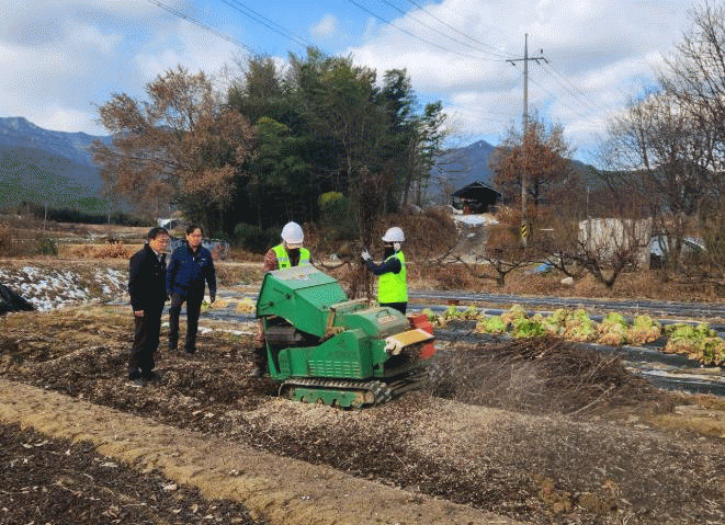 곡성군농업기술센터는 영농부산물 안전처리 지원사업을 진행하기 위해 산림 연접지와 고령층 및 취약계층 농가 등의 신청을 받아 현장에서 영농부산물 파쇄를 지원하고 있다.