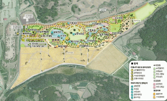 또한 정원 관련 행사도 지역축제와 연계한 다양한 프로그램이 운영될 ‘모두의 마당’과 정원에 흐르는 ‘생태연못’, 계절별 꽃과 나무, 정원을 조망할 수 있는 공간별 쉼터 등 다양한 정원 요소를 갖추어 정원의 재미를 더 할 것으로 보인다.