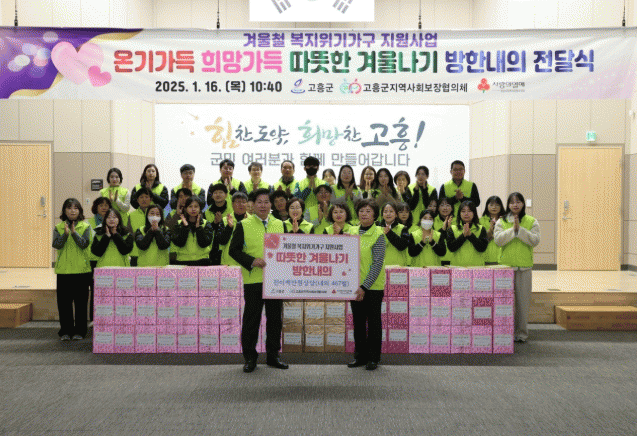 군 관계자는 “취약계층이 따뜻한 겨울을 보낼 수 있도록 조금이나마 도움이 되길 바란다”며, “앞으로도 민관 협력을 통해 지역 내 소외받는 군민이 없도록 복지사각지대 발굴에 최선을 다하겠다”고 말했다.