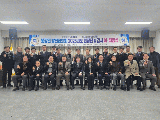 김영희 봉강면장은 “봉강면의 발전을 위해 다양한 사업과 봉사활동을 추진하고 있는 발전협의회의 열정적인 노력에 감사드린다”며 “앞으로 발전협의회와 적극적으로 협력해 지역발전에 보탬이 되도록 노력하겠다”고 말했다.