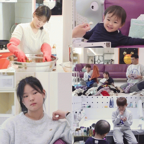 그런가 하면 1년 만에 훌쩍 성장한 오남매가 변하지 않은 남다른 점심 스케일을 과시해 입을 떡 벌어지게 한다. 첫째 수아는 즉석에서 파김치를 담그고, 둘째 수애는 업소용 냄비를 들고 짜장라면 8개를 끓이는데 마치 단체 급식실 같은 풍경을 자아낸다.