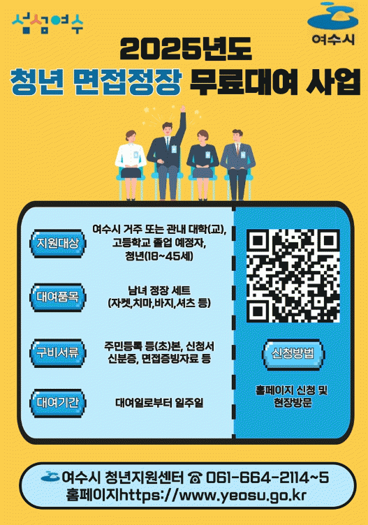 한편, 여수시는 지난해 364명의 청년에게 정장 무료 대여 서비스를 지원했으며, 대다수 높은 만족도를 보였다.