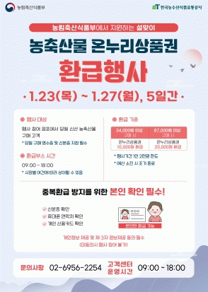 이 기간에 지역 내 전통시장에서 국산 농수축산물을 구매한 소비자들은 구매 금액의 최대 30%를 온누리상품권으로 환급받게 된다. 단, 1인당 농축산물은 2만원, 수산물은 2만원 한도 내에서 가능하다.