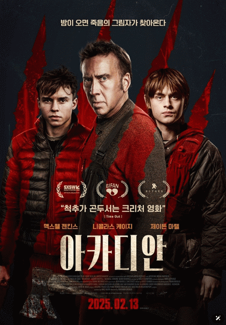 SXSW 영화제, 부천국제판타스틱영화제, 시체스국제판타스틱영화제에 초청되어 해외 매체들의 찬사를 받고 있는 크리처 액션 스릴러 '아카디안'은 오는 2월 13일(목) 개봉 예정이다.