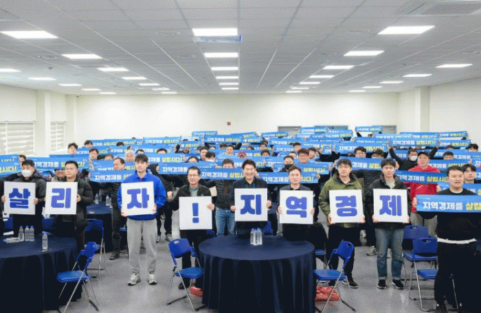끝으로 순천시 환경미화원 125명은 지역경제 활성화에 다 함께 동참하자는 의미로 “지역경제를 살리자”라는 주제의 플래카드 퍼포먼스를 펼쳤다.