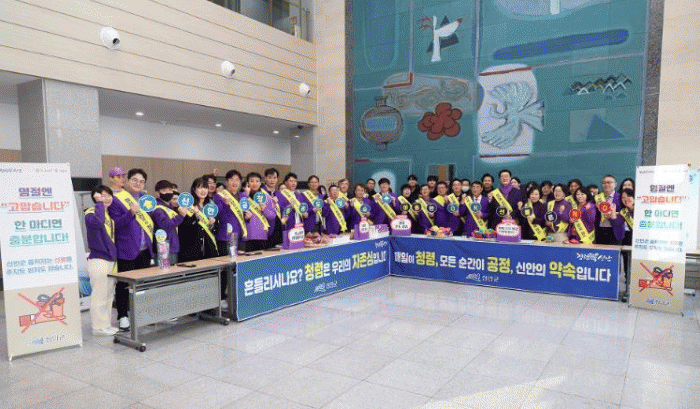 특히 이번 운동에는 청렴 복권 행사도 있어 직원들의 흥미를 유발했고, 업무 집행에 방해가 되는 금품?향응을 받지 않겠다는 직원들의 청렴서약도 같이 진행되어 의미를 더했다.