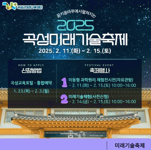 한편, 곡성미래기술축제에 대한 기타 문의는 곡성군미래교육재단을 통해 가능하다.
