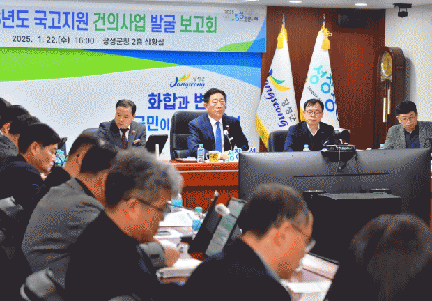 군은 22일 군청 상황실에서 김한종 장성군수 주재 ‘2026년도 국고건의사업 발굴보고회’를 가졌다.