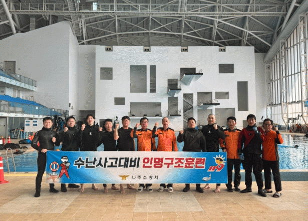 전라남도 나주소방서는 오늘 광주광역시 광산구 남부대학교 시립국제수영장에서 수난구조훈련을 실시했다.