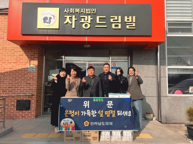 전라남도의회는 도내 사회복지시설 이용자와 관계자들이 따뜻한 설 명절을 보내고, 지역사회와 함께하는 나눔의 가치를 강조하기 위해 매년 2차례 관내 사회복지시설에 대한 명절 위문 방문을 실시하고 있다.