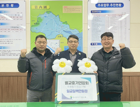 서진석 벌교읍장은 “벌교건설기계경영인연합회의 따뜻한 나눔에 깊은 감사의 뜻을 전한다.”라며 “기탁금을 꼭 필요한 곳에 소중히 사용해 지역사회의 복지 증진에 기여하겠다.”라고 말했다.