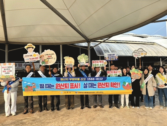 이번 캠페인은 나주시와 국립농산물품질관리원 명예감시원 등 30여 명이 함께 참여한 활동으로 원산지 표시 전단지와 표시판, 홍보용 물티슈를 배포하며 시민과 상인들에게 원산지 표시의 중요성을 알렸다.