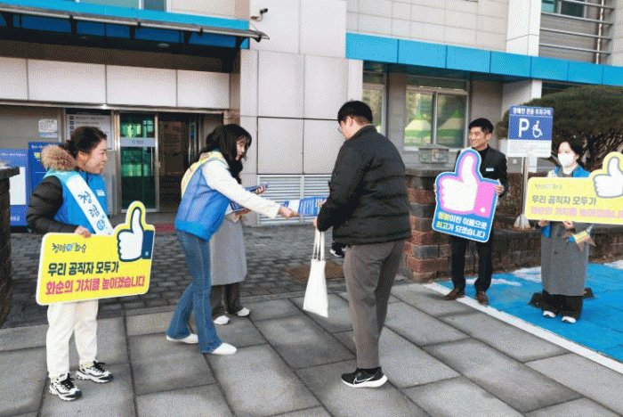 이날 캠페인에는 구복규 군수, 이호범 부군수, 김승오 기획감사실장 등 간부공무원과 화순군 공무원 노동조합이 참여해 ▲금품·향응 수수 금지 등 청탁금지법 준수 ▲행동강령 준수 ▲음주운전 금지 ▲직무관련자와의 만남 자제 등의 내용이 담긴 홍보물을 배부하고, 비위행위 발생 및 발견 시 신고 방법 등을 안내했다.