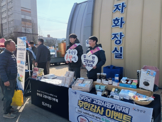 무안군은 오일장이 열린 21일과 24일에는 일로읍과 무안읍 전통시장에서 지역특산품으로 구성된 답례품을 전시하고 홍보 물품을 배부하며 고향사랑기부제를 적극 알렸다.