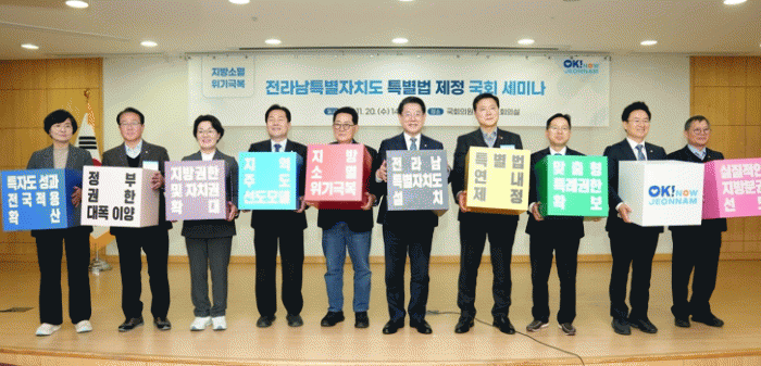 지난해 7월에는 전남 국회의원 10명이 함께 ‘전라남특별자치도 특별법 제정 촉구 성명서’를 발표했고, 11월에는 전남 국회의원 전원 공동 주최로 ‘국회 세미나’를 개최해 전국적인 공론화와 함께 국회, 정부의 관심을 이끌어냈다.